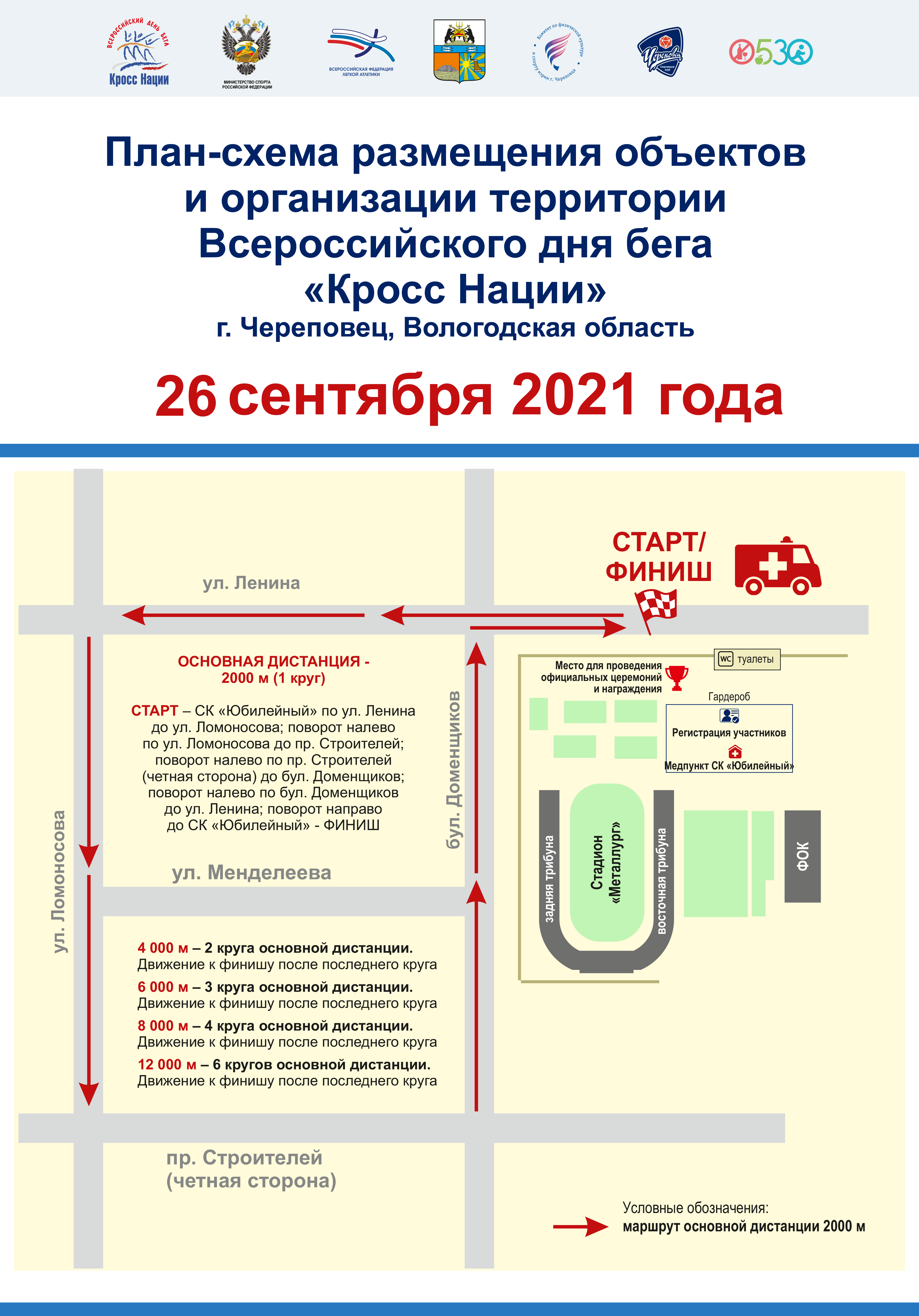26 сентября 2021 года на территории СК «Юбилейный», стадиона «Металлург» , в районе улиц Ленина, Ломоносова, проспекта Строителей и Бульвара Доменщиков состоится спортивный праздник в рамках Всероссийского Дня Бега «Кросс Нации – 2021».