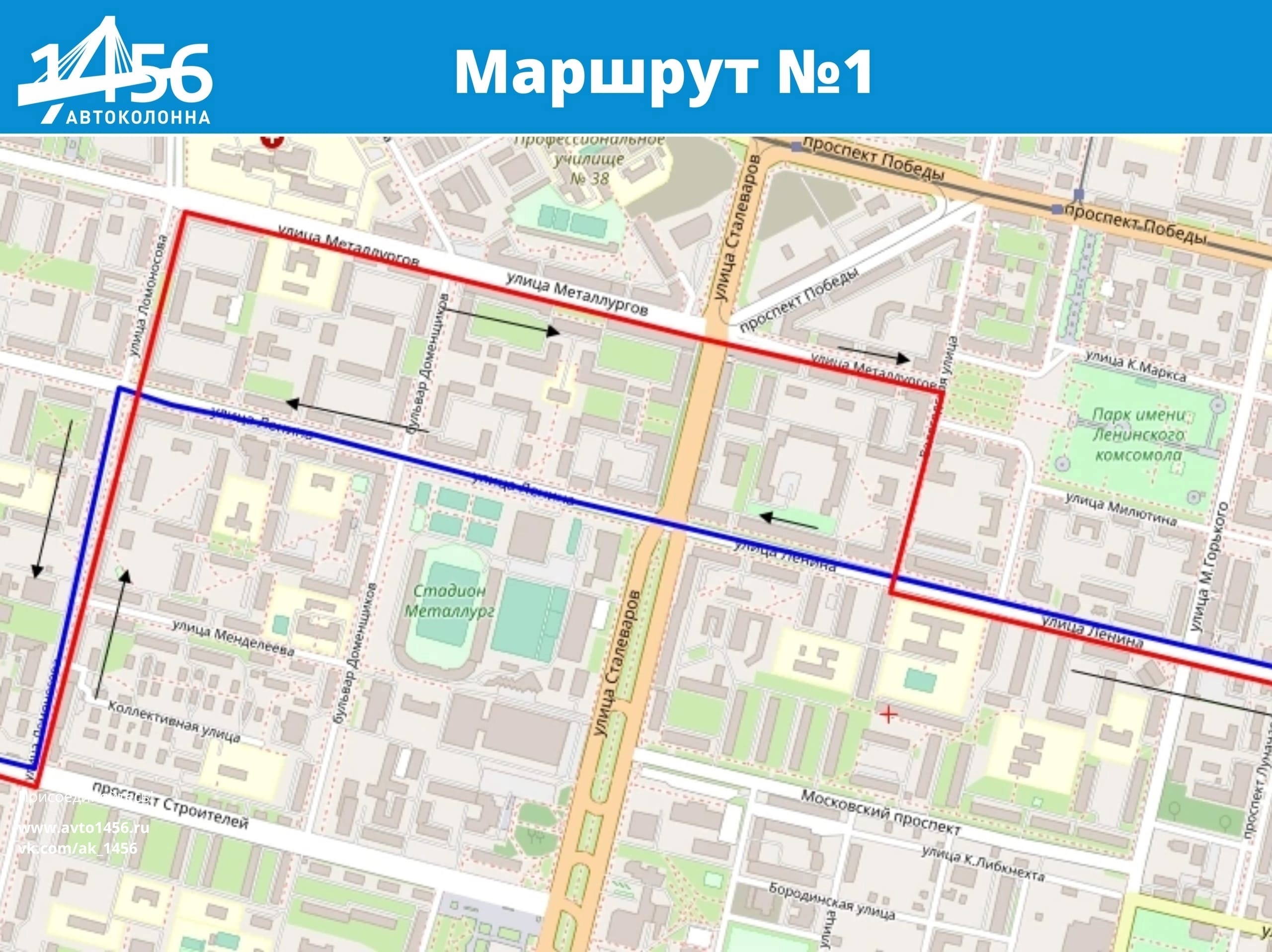 маршрут № 1 будет осуществлять движение ул. Ленина - ул. Ломоносова - пр. Строителей далее по маршруту . В обратном направлении пр. Строителей - ул. Ломосова - ул. Металлургов - ул. Вологодская - ул. Ленина далее по маршруту;