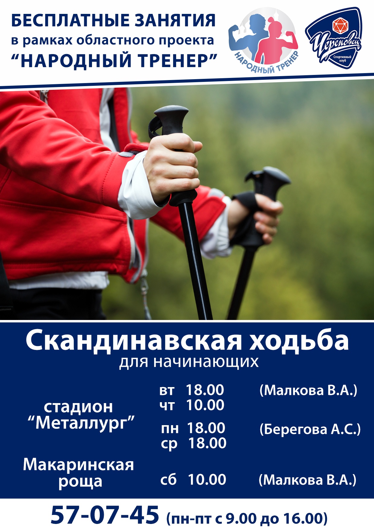 Требования к участникам: удобная обувь и одежда по погоде. Палки для скандинавской ходьбы на стадионе "Металлург" выдаются. Для тренировок в Макаринской роще нужно иметь собственный инвентарь.